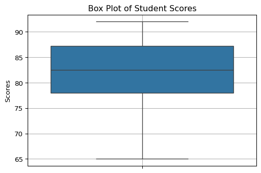 plt.title('Box Plot of Student Scores')